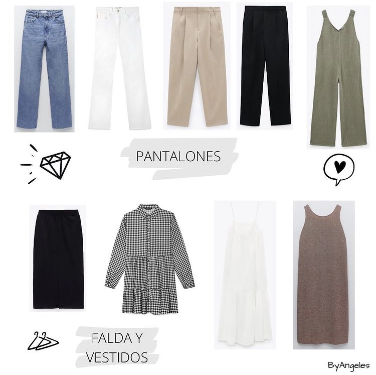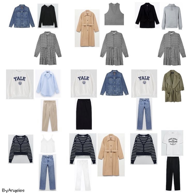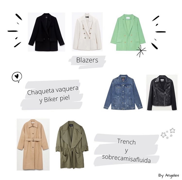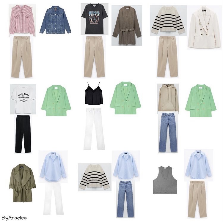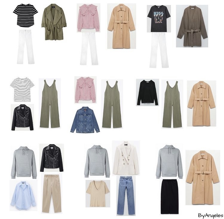 Ahora vamos a ver un ejemplo de Armario Cápsula de Primavera, y unas cuantas posibilidades de looks con cada prenda.